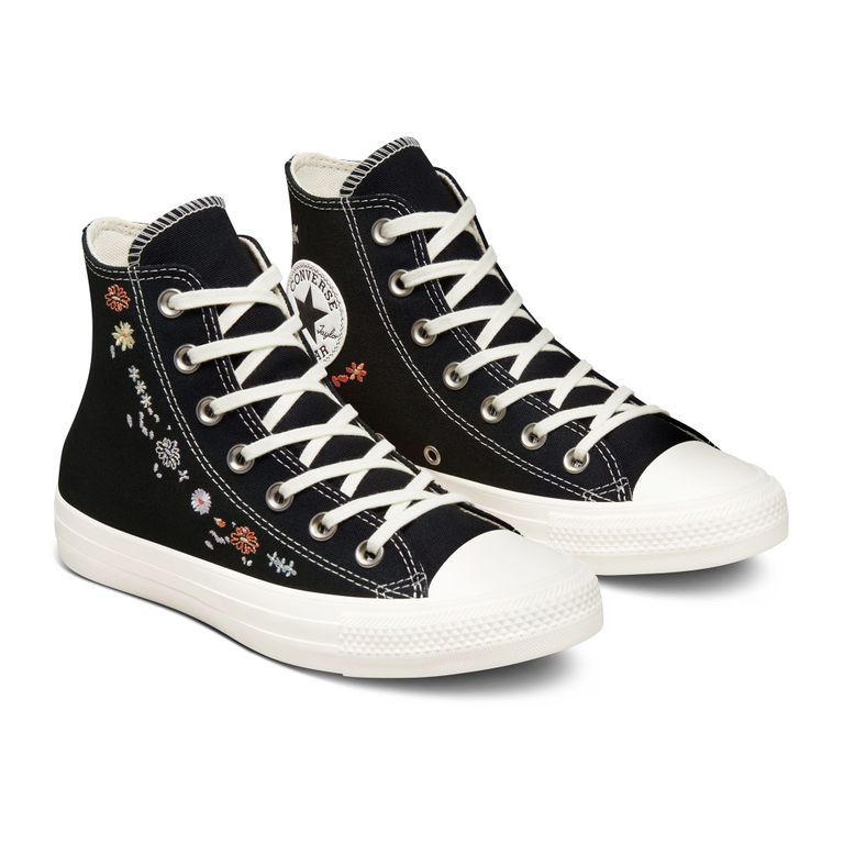 Цвет: Черные высокие кеды Converse Chuck Taylor with floral embroidery in black